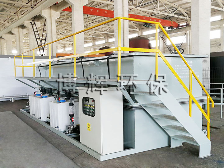 原水進入分配箱,再由分配箱均勻送入濾池,經過濾層自上而下地過濾水,通過多孔板水帽到達積水區,清水區通過連通管注入存水箱內貯存,水箱充滿后,通過出水管入清水池。濾層不斷截留懸浮物,造成濾層阻力的逐漸增加,因而促使虹吸管內的水位不斷升高。當水位達到虹吸輔助管口時,水自該管中落下,通過抽氣管借以帶走虹吸下降管中的空氣,當真空度達到一定值時,便發生虹吸作用。這時水管中的水自下而上地通過濾層,對濾料進行反沖洗。當沖洗水箱水面下降至虹吸破壞管時,空氣進入虹吸管,破壞虹吸作用。濾池反沖洗結束,進入下一周期工作。反洗時濾池交錯,兩個水箱的水共用一個濾池反洗。