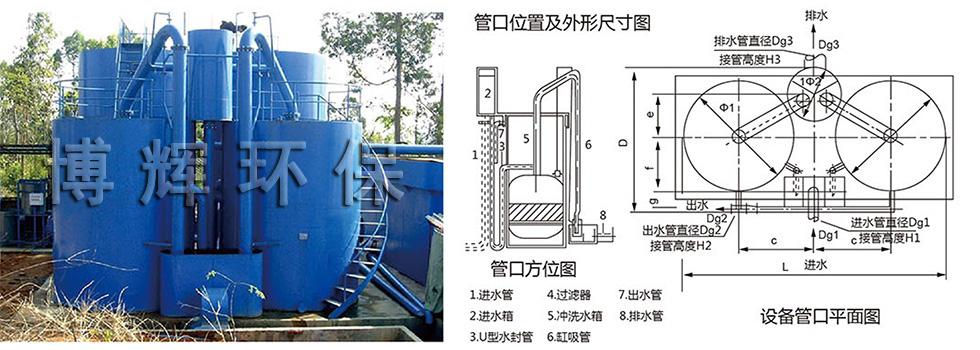 無閥過濾器中設置的進水分配水箱和U形進水管是為了避免空氣吸入池內,因為當有空氣吸入時,在運行后期可能形不成虹吸,而且如不設此U形管,則在反洗后期,進水管就成了虹吸破壞管。