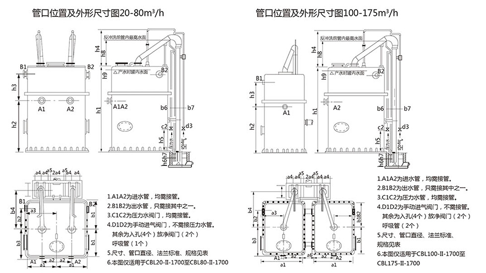 重力式無閥過濾器進水、出水、沖洗及排水不用閥門,靠水力作用自動運行,運行費用低,管理方便,安全可靠,運行自動化,設備一體化,進水箱、過濾器、反沖洗水箱等組裝一體,結構緊湊,用戶只需按要求做設備基礎和接通進出水管即可投入運行。同時,過濾器均裝有頂蓋,衛生防護條件好,可以露天設置,與鋼筋混凝土濾池相比自重小,可采用瀝青砂柔性基礎。