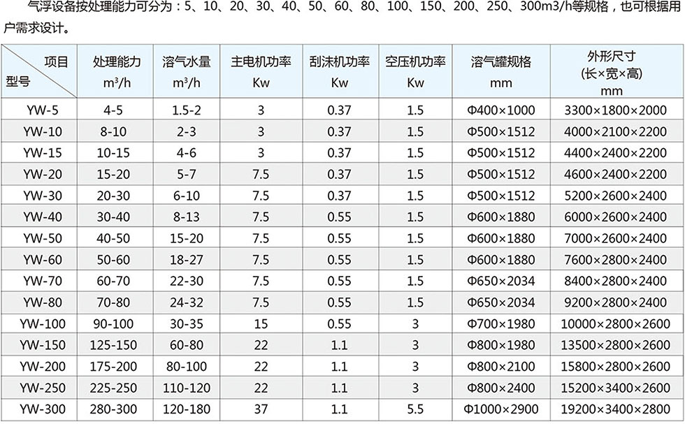 備注:考慮運輸的方便處理水量超出100m3/h需現場制作,設備外型尺寸可根據用戶現場情況定制。 | |||||